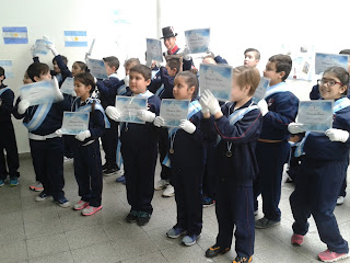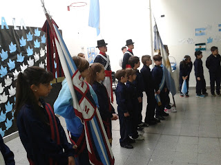 LOS NIÑOS DE 4to GRADO DEL TURNO MAÑANA «PROMETIERON LEALTAD A LA BANDERA NACIONAL» Y FUERON ACOMPAÑADOS POR DOS EFECTIVOS DEL REGIMIENTO DE PATRICIOS.
