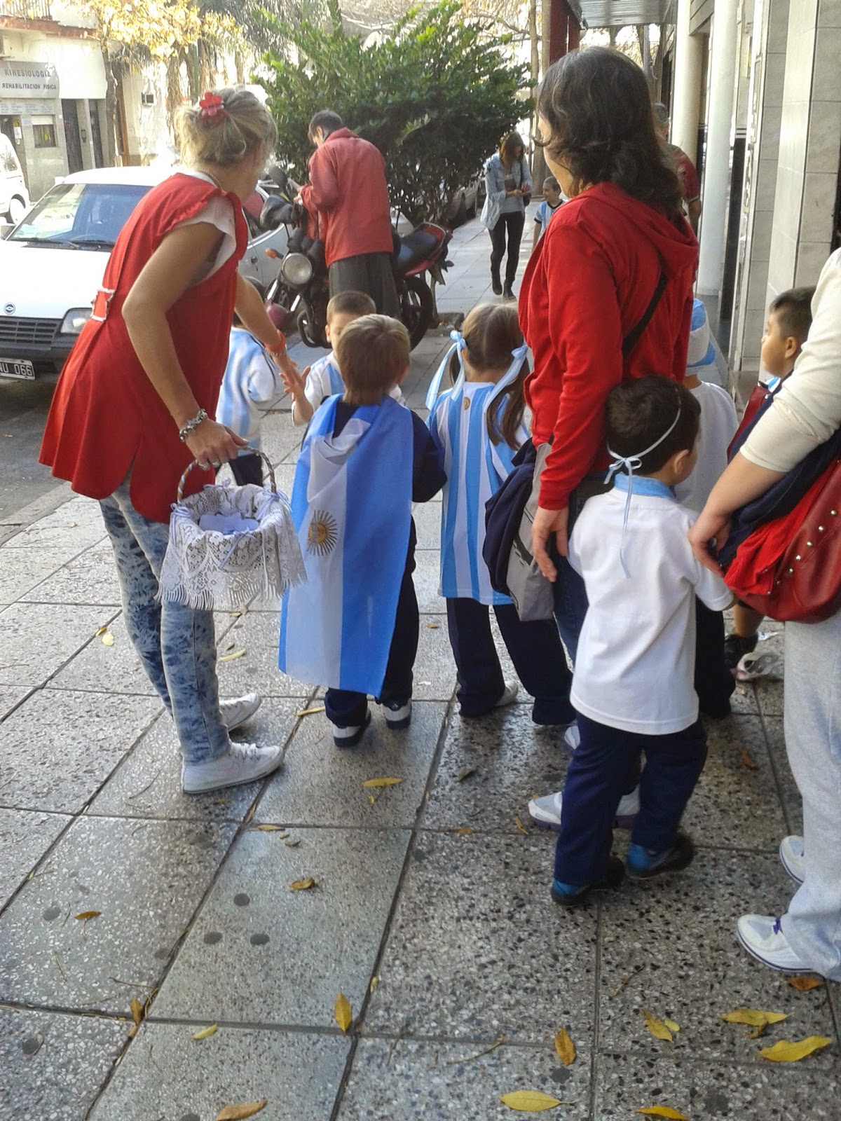 regalando cintas patrias para festejar el día de la escarapela. ¡Qué alegría!